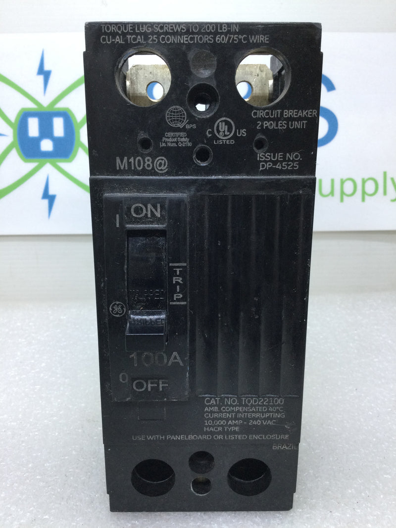 GE General Electric TQD TQD22100/22100WL 2 Pole 100 Amp 120/240v Circuit Breaker This breaker provides superior electrical protection, while supporting the demands of both residential and commercial applications. It is designed for quick and easy installation, and is rated for use at 100 amperes, 480Y/277 volts.