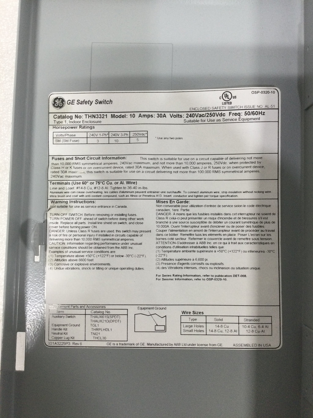 • Wire Range (Cu/Al): 14-8 CU; 12-8 AL