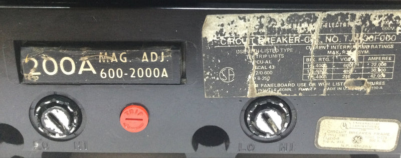 General Electric TJK436F000 400 Amp 3 Pole 600V Circuit Breaker w/200 Amp Trip