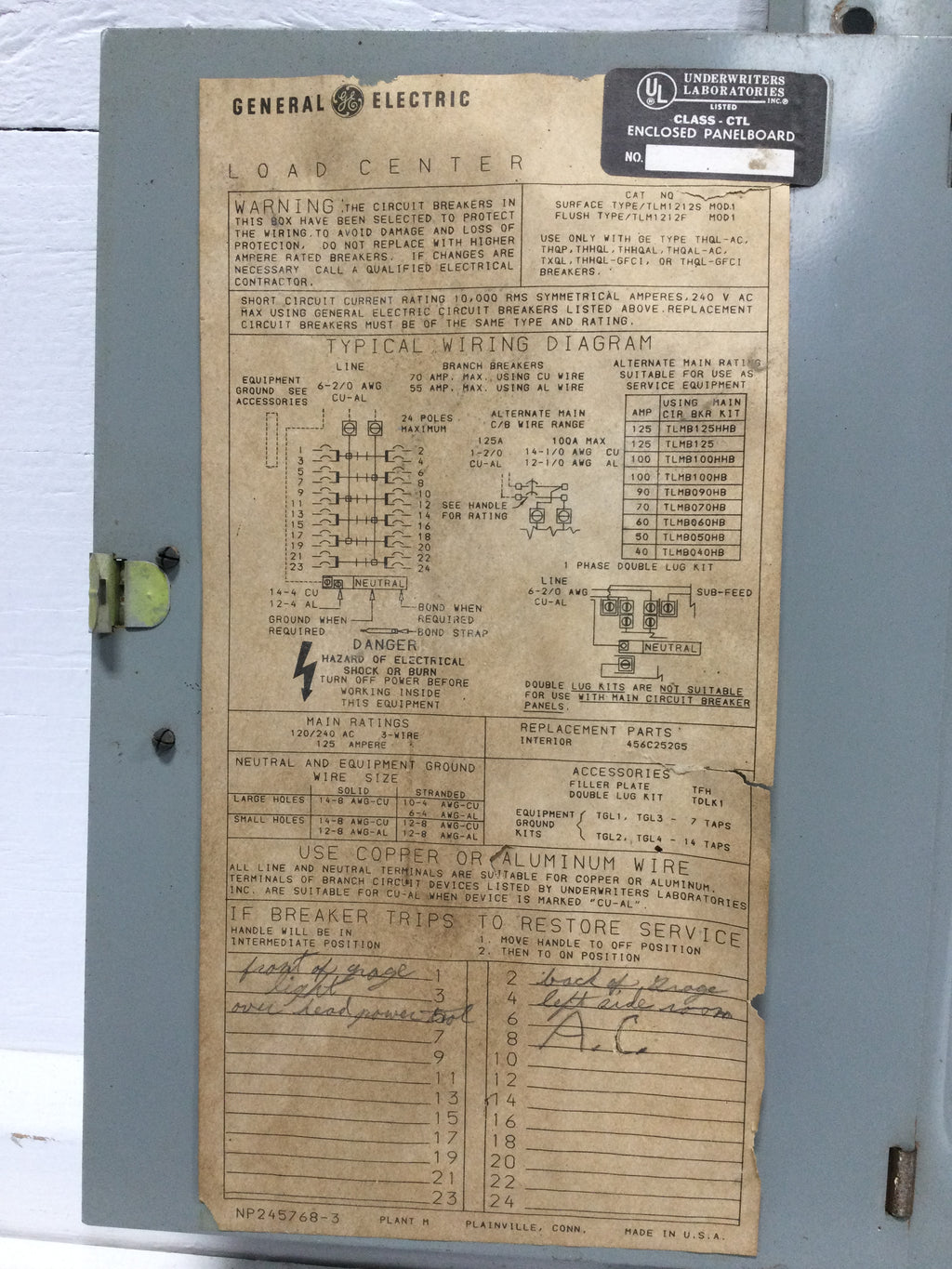 General Electric TLM1212S/F 125A 24 Space 120/240V Cover/Door 17" x 11 5/8"