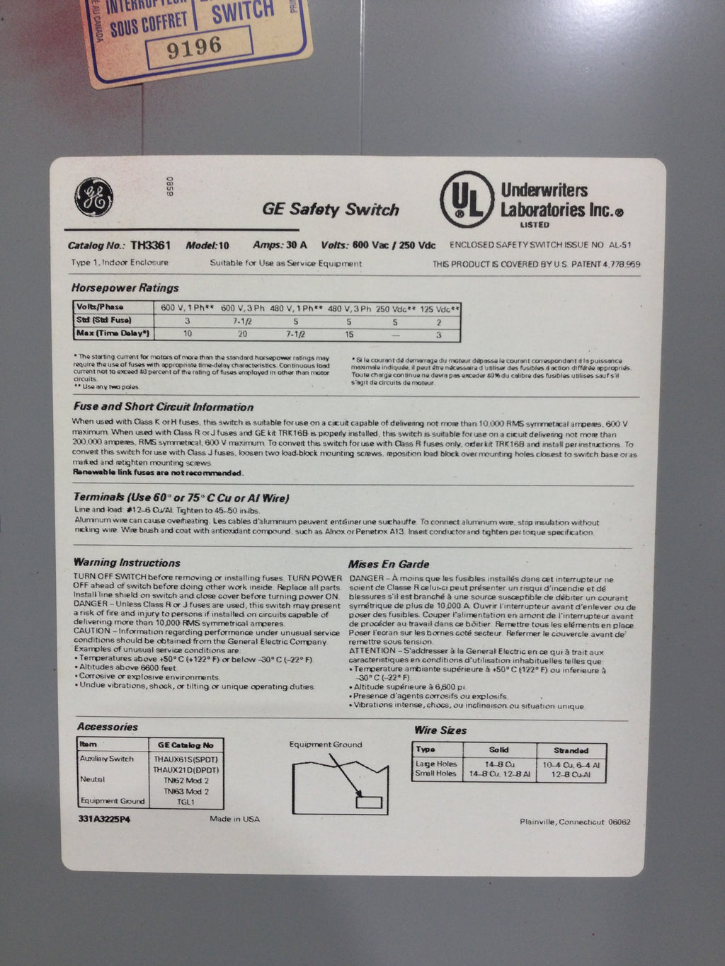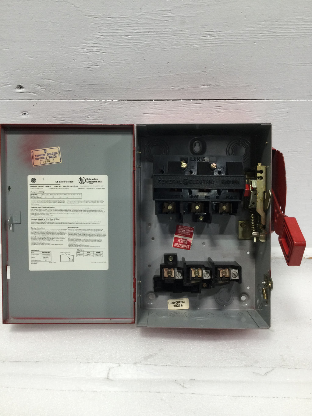 The General Electric TH3361 is a 30 Amp, 3 Space fusible safety switch designed for reliable circuit protection up to 600V. Its compact 12 5/8" x 9" size fits easily into various electrical setups, providing safe and efficient disconnect capabilities in industrial and commercial applications.