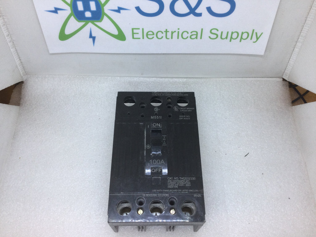 General Electric THQD32100 3 Pole 100A 240V 22KAIC Type THQD Circuit Breaker