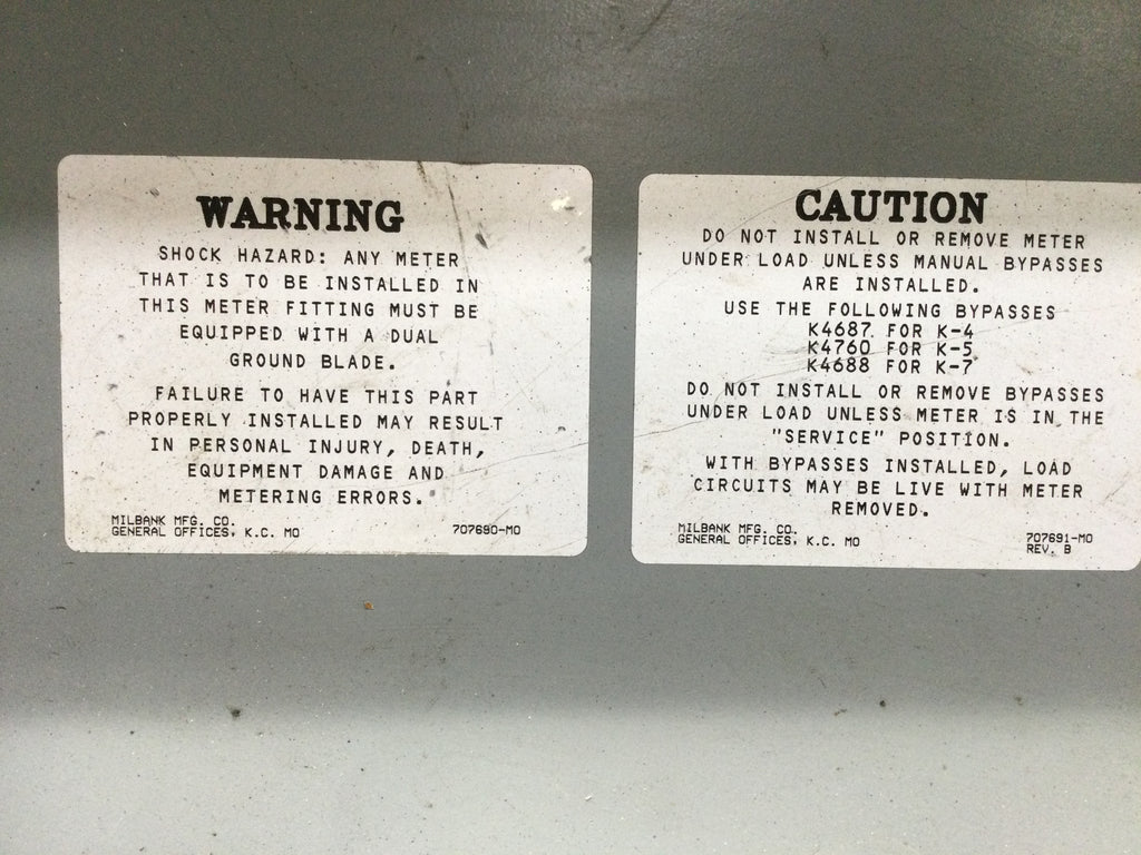 Milbank 4667-9504 600 Amp 480 Amp Continuous 3 Phase Type 3R 7 Terminal Meter Fitting Nema 3R Enclosure U4667-XT-9504
