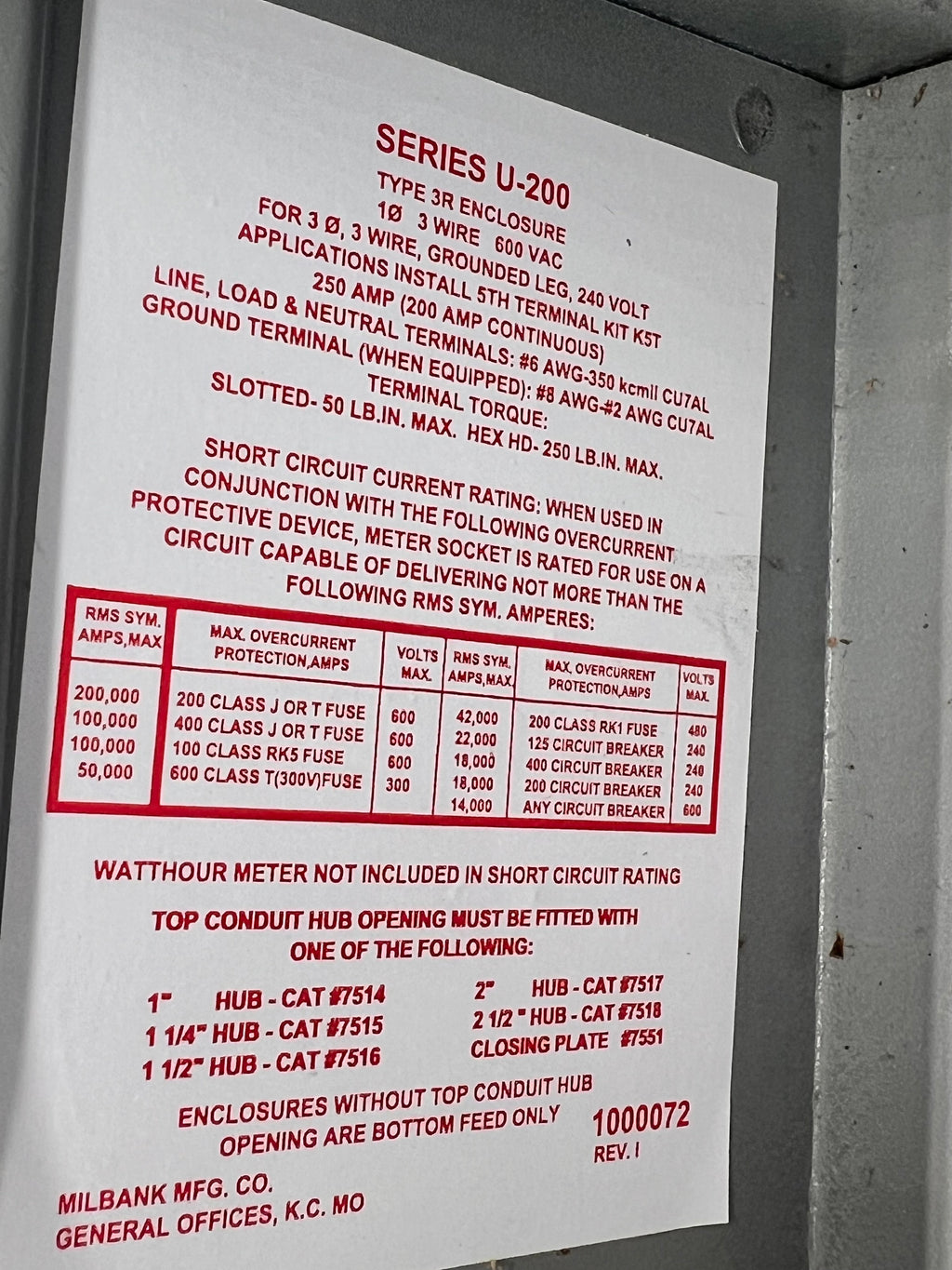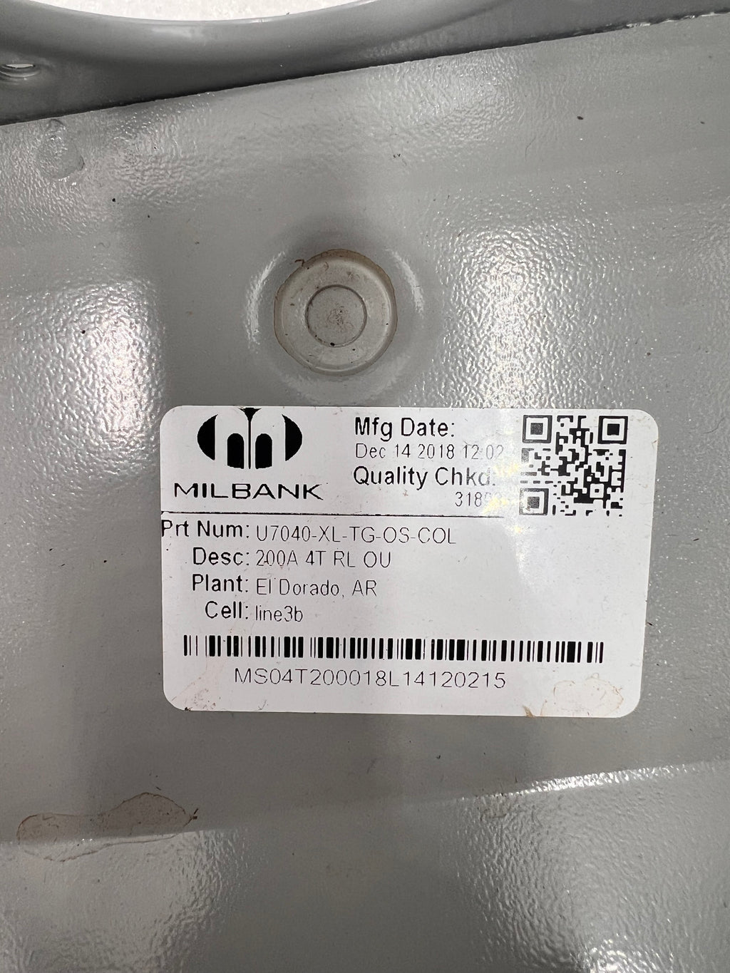 Milbank U7040-XL-TG-OS-COL 200A 600VAC Single Phase Nema3r Meter Enclosure