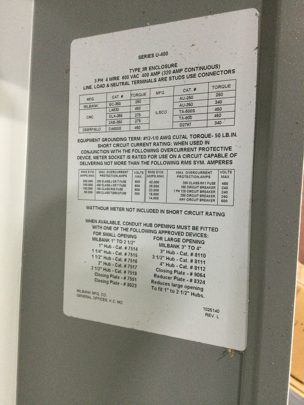 Milbank UAP3566-X-HSP 7 Terminal Ringless Large Closing Plate Lever Bypass Stainless Steel Hasp Aluminum Painted Wide Shell