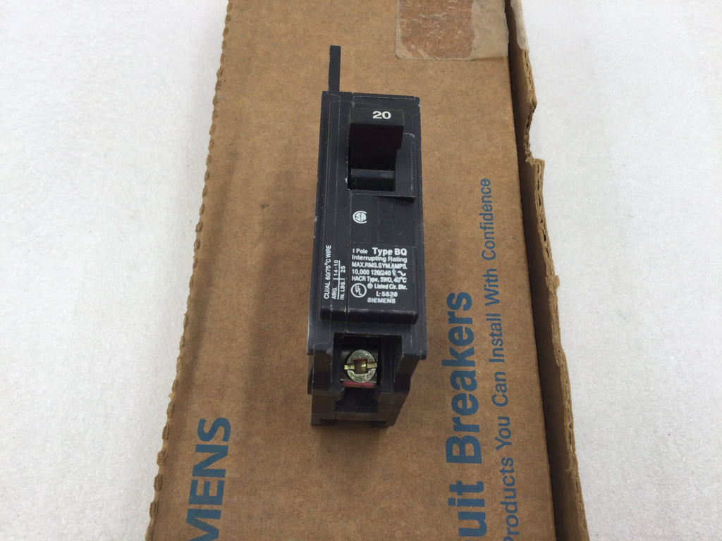 The Siemens/ITE Gould BQ1B020 circuit breaker is a 20 Amp, 1 Pole Type BQ breaker. Perfect for personal or commercial use, it provides reliable protection from short circuits, overloads, or electricity spikes. Its compact, lightweight design means it is easy to install in any breaker box.