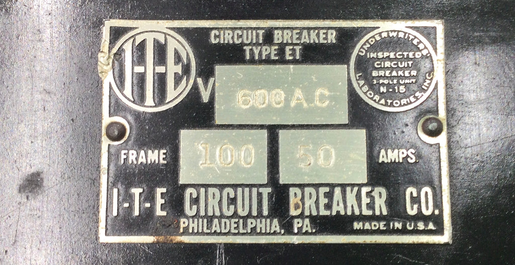 ITE 50 Amp 3-Pole 600V Type ET Circuit Breaker