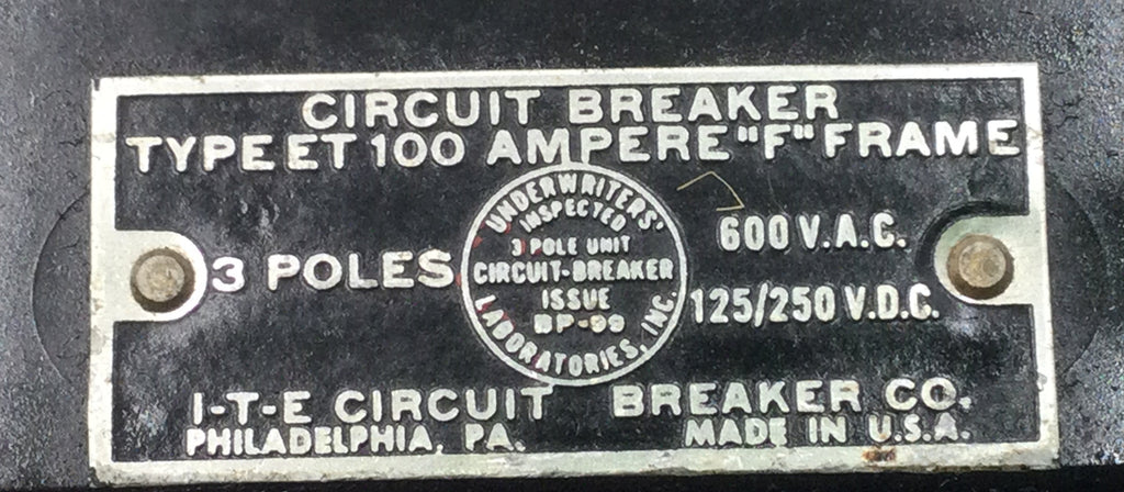 ITE ET4036 70 Amp 3 Pole 600V Type ET100 Circuit Breaker
