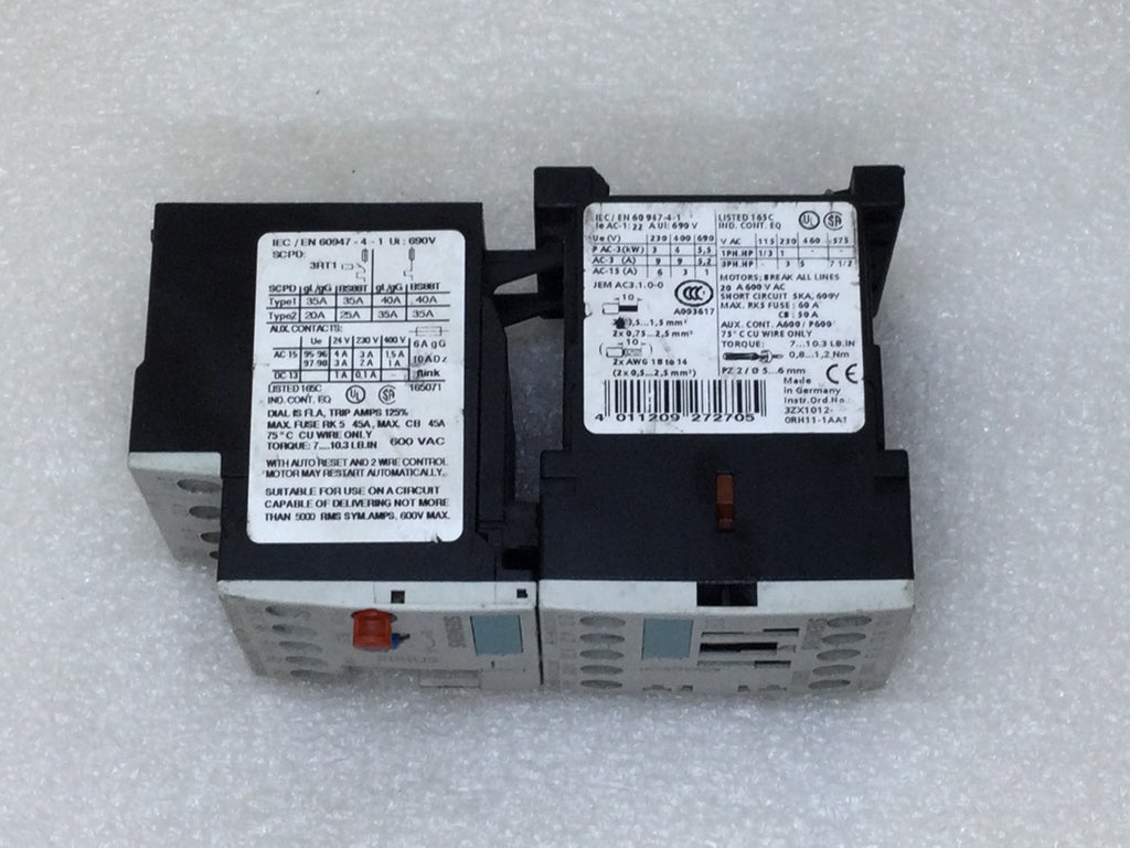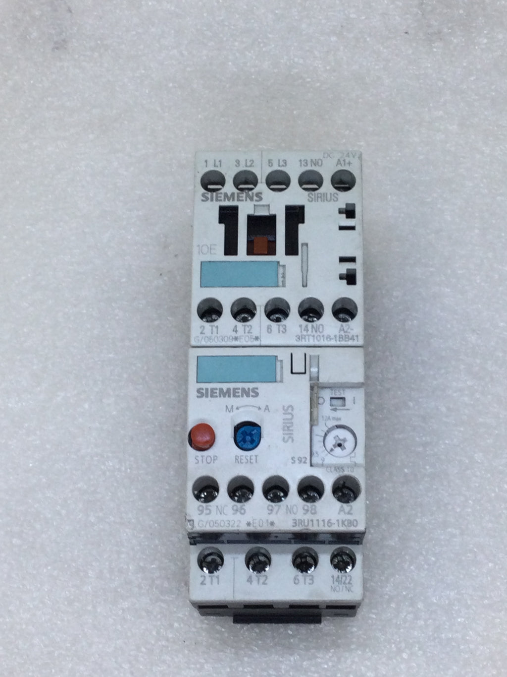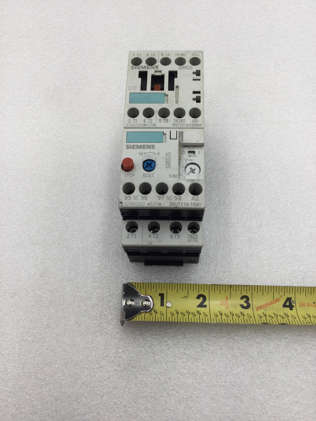 Siemens 3RT1016-1BB41 20 Amp 3 Pole 230-690 VAC 3-7.5 HP Contactor with 3RU1116-1KB0 Overload Relay