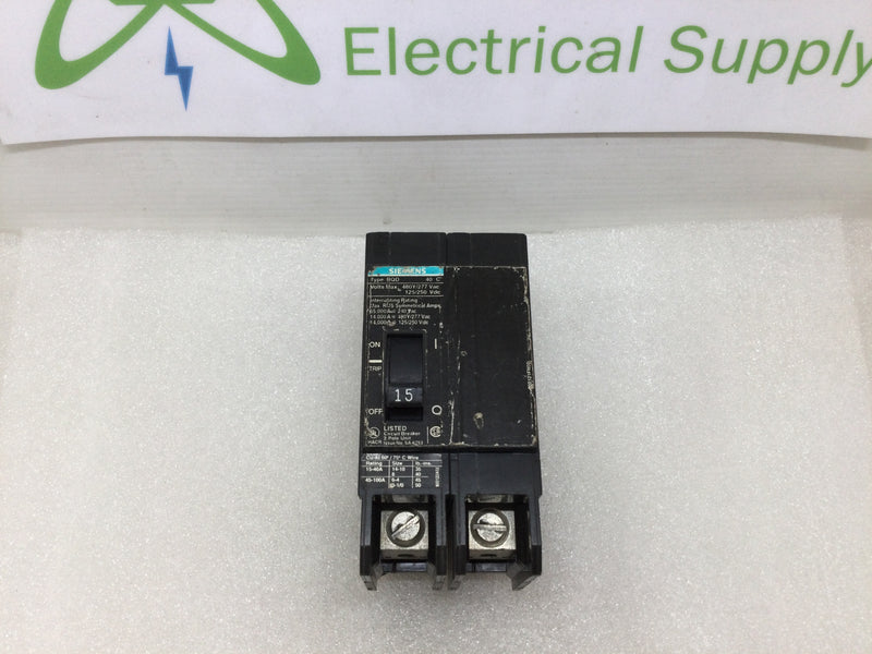 Siemens BQD215 15 Amp 2 Pole 277/480V Circuit Breaker