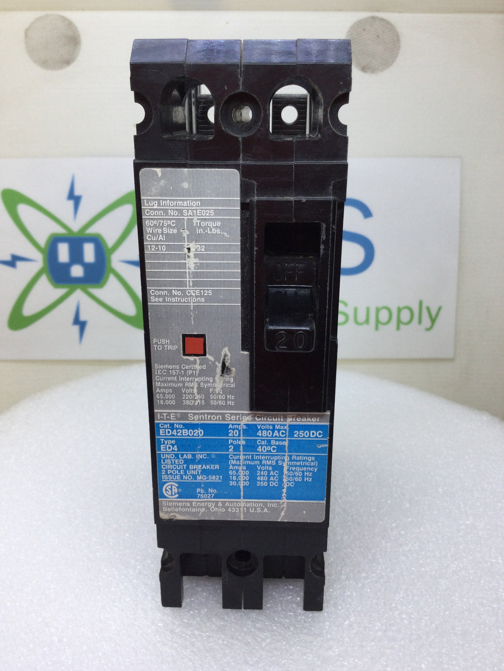 Siemens ITE ED42B020 20 Amp 2 Pole 480V Sentron Series Circuit Breaker