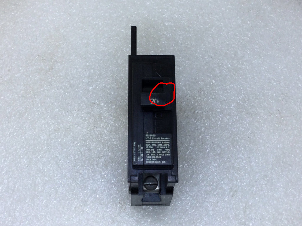 Siemens/ITE/Gould BQ1B020 20 Amp 1 Pole 120/240V Circuit Breaker - Cosmetic Flaw