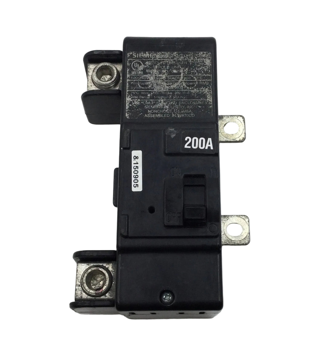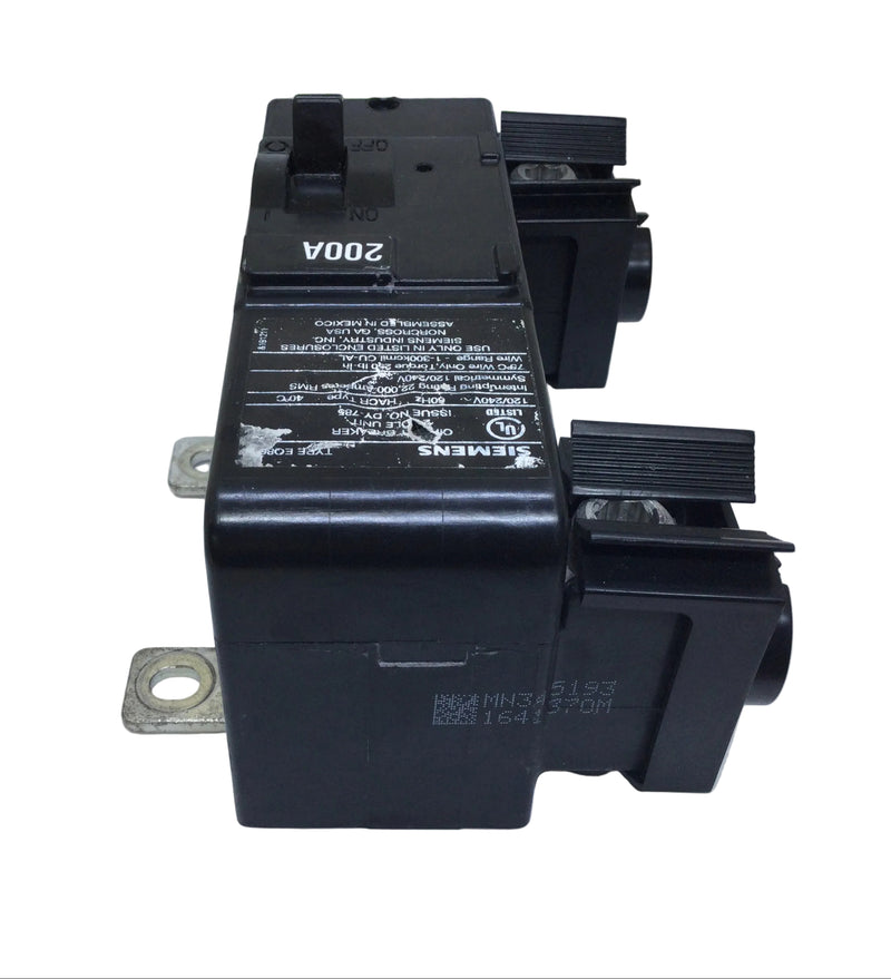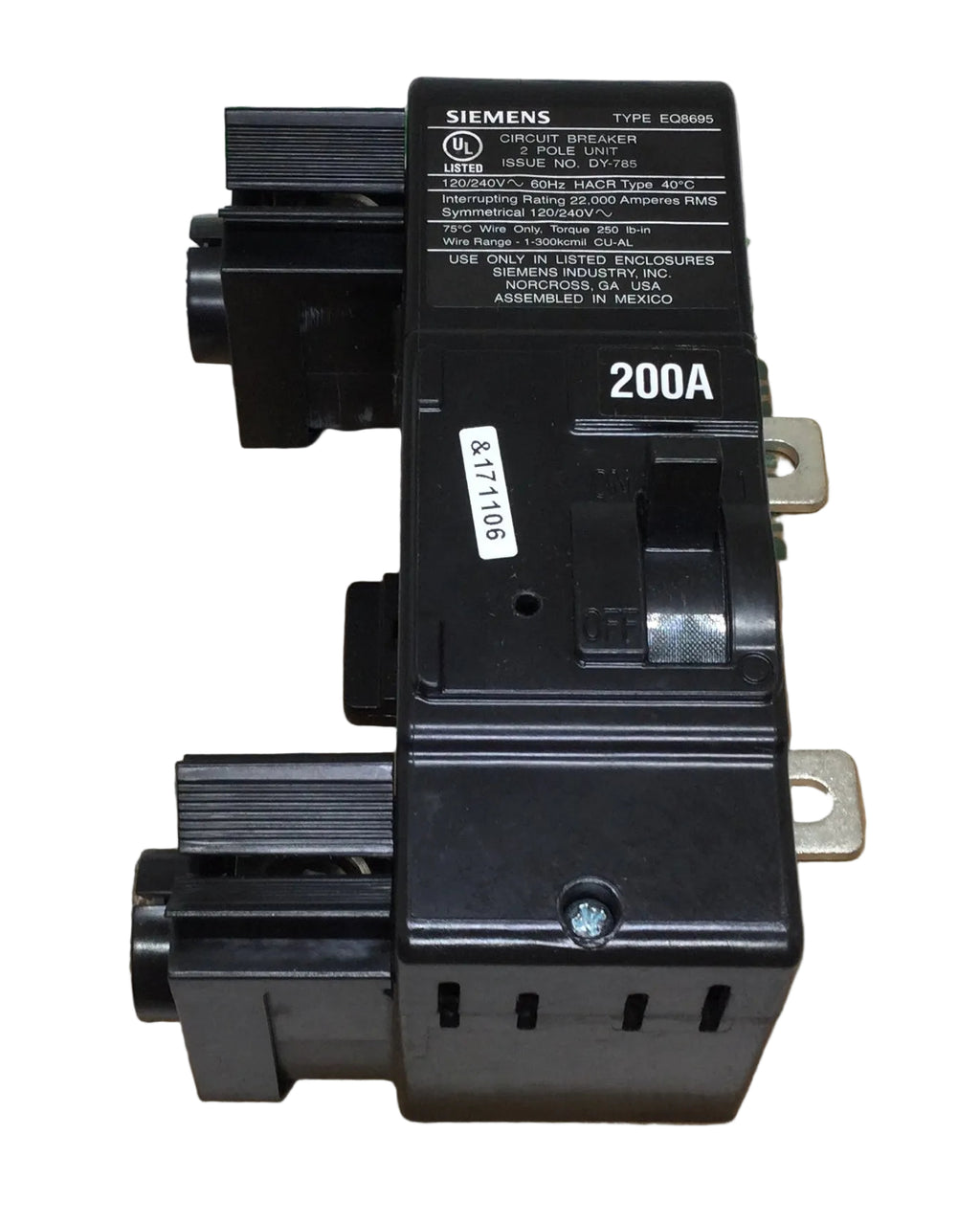 Siemens EQ8695 circuit breaker delivers reliable 200 Amp protection with 2-pole configuration for 120/240V applications. Engineered to meet stringent industry standards, this breaker provides thermal-magnetic trip protection against overloads and short circuits.