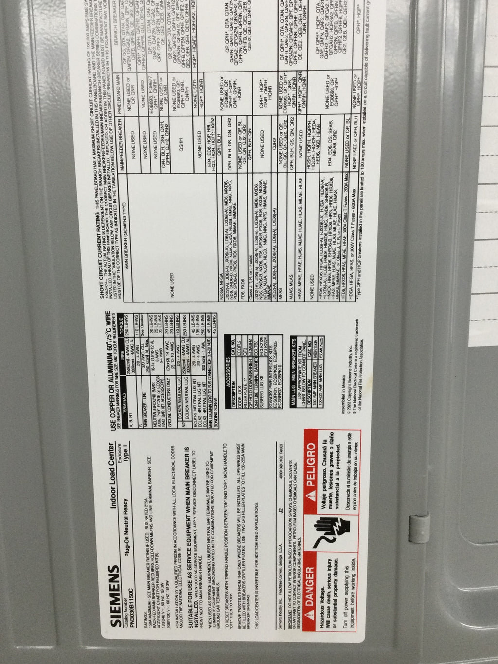 Siemens PN3030B1150C Cover Only 150 Amp 120/240V Type 1 30 Space