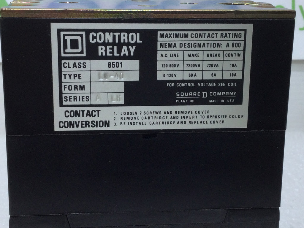 Square D 8501LO40ALK Control Relay Type L Series A-LK 120-600V 60Amp Max