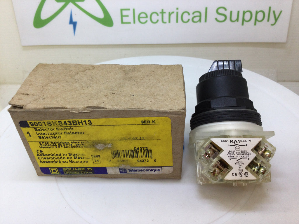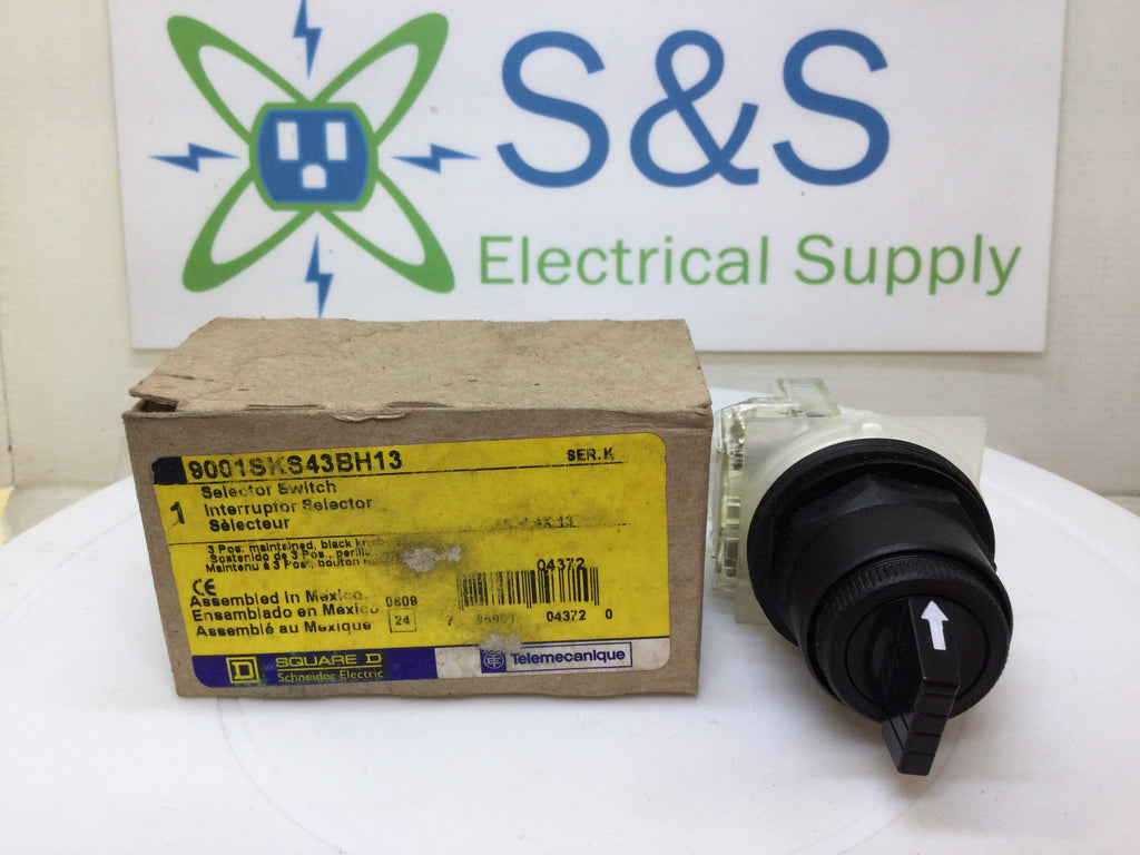 Square D 9001SKS43BH13 Selector Switch 3 Position Maintained with Black Knob