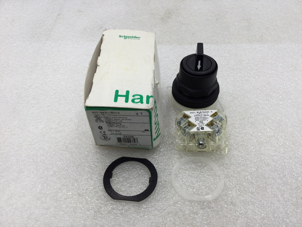 Schneider 9001SKS11BH13 2 Position Maintained Selector Switch with Black Knob