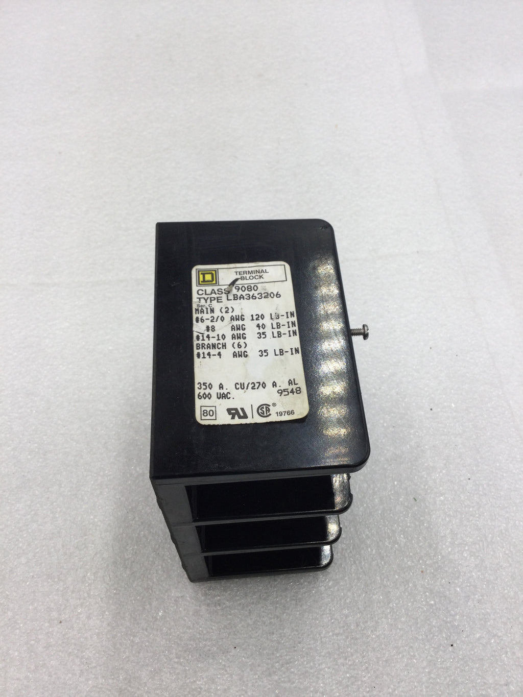 Square D 9080 LBA363206 350 Amp CU/270A AL 600 VAC 3 Pole 2 Main 6 Branch Terminals per Pole