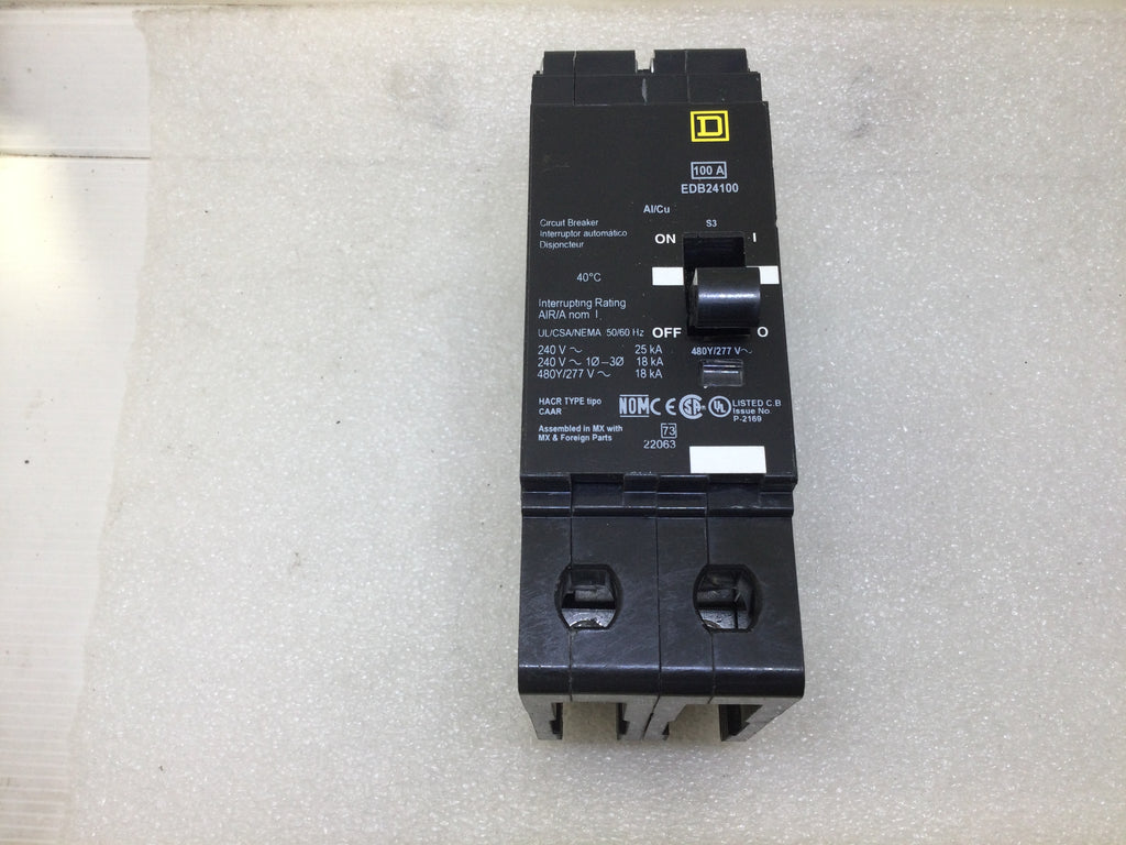 Square D EDB24100 100 Amp 2 Pole 480/277V Circuit Breaker