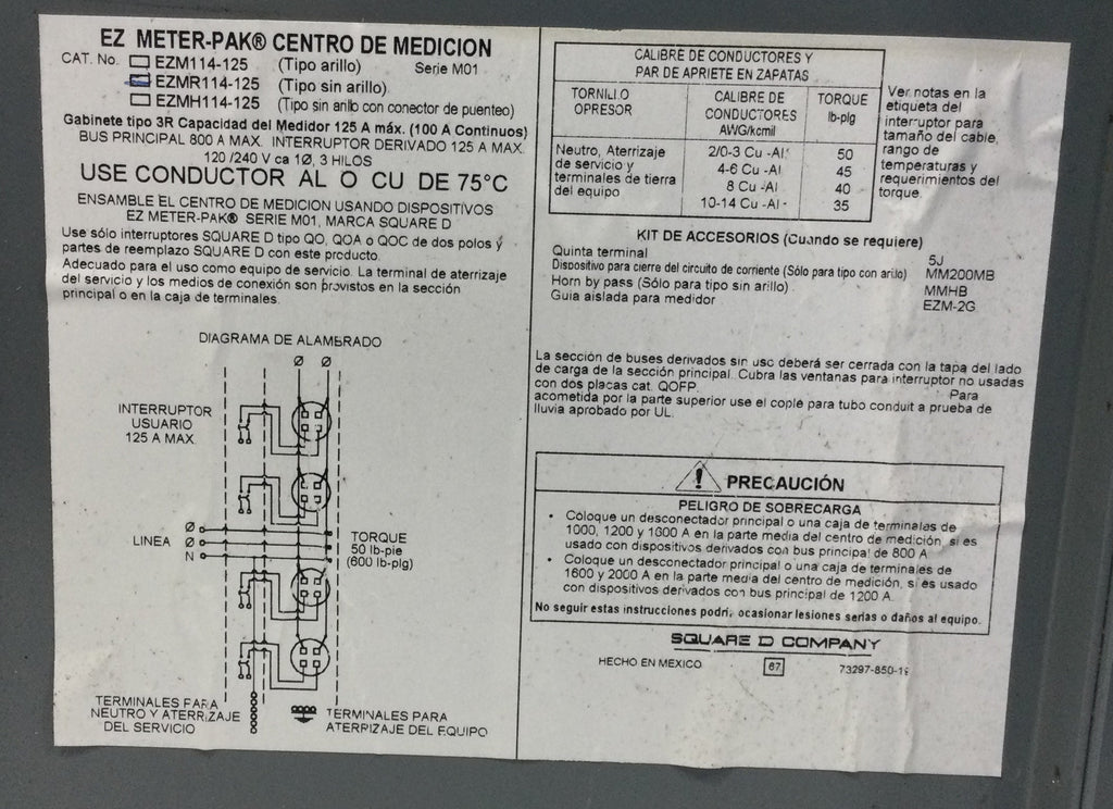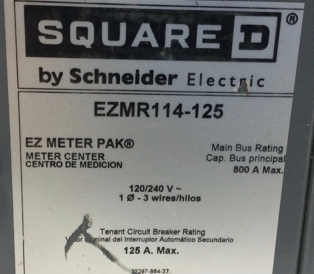 Square D EZMR114-125 125 Amp 240V 1 PH 3 wire EZ-Meter Pack/Panel Box