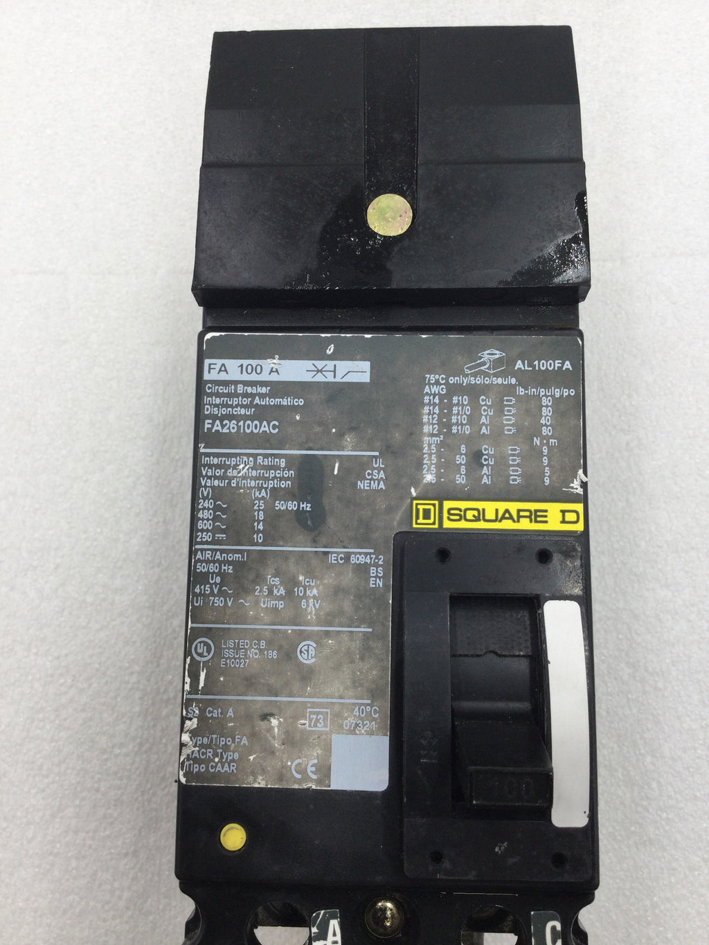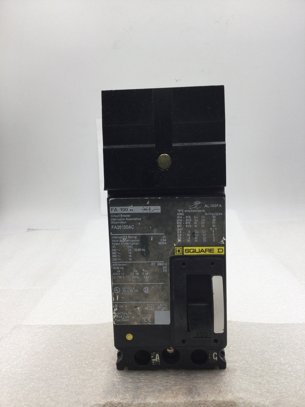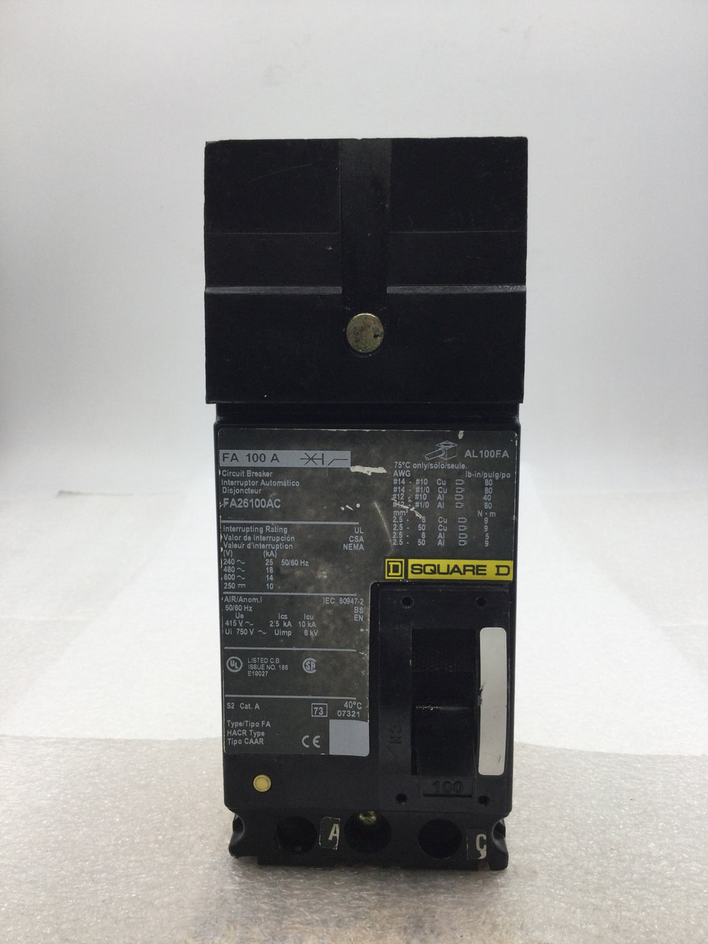 Square D FA26100AC 100 Amp 2 Poles 600V I-Line Molded Case Circuit Breaker