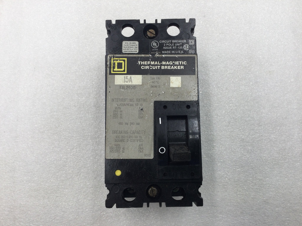 The Square D FAL24015 is a 15 Amp, 2-pole circuit breaker rated for 240/480V applications. Designed for reliable protection and safety in electrical systems, this breaker ensures consistent performance under load.