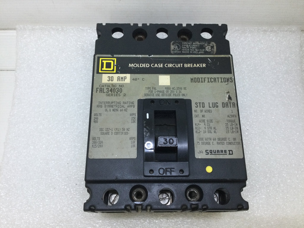 Square D FAL34030 30 Amp 3 Pole 480V Type FAL Circuit Breaker - Cosmetic Flaw