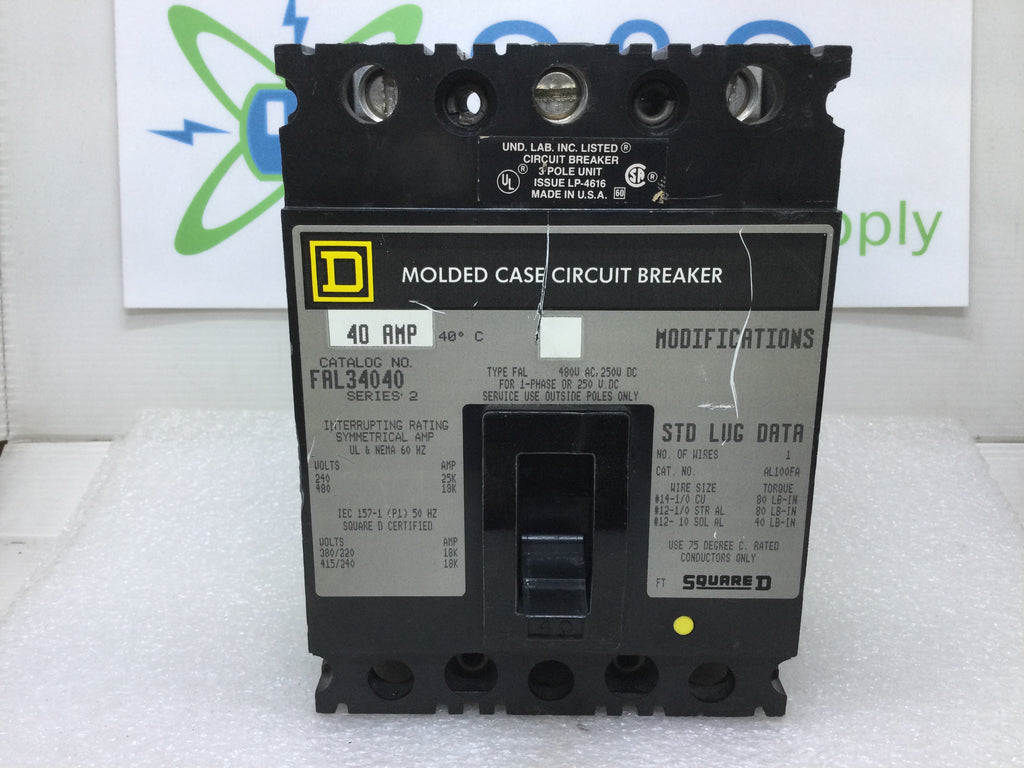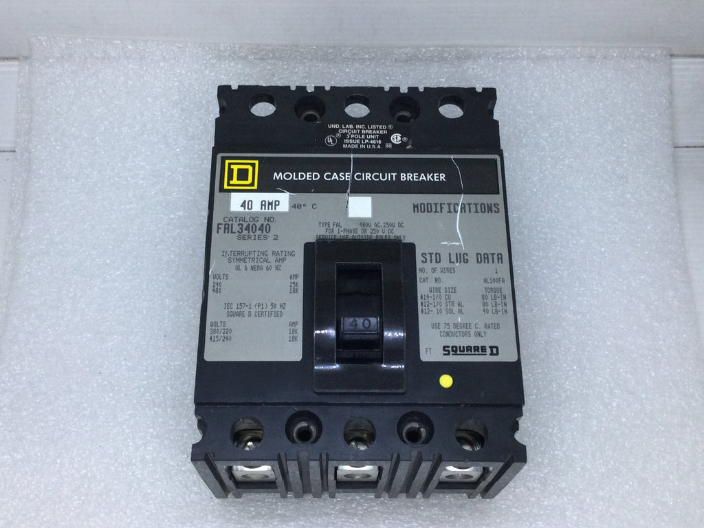 Square D FAL34040 40 Amp 3 Pole 480V Type FAL Circuit Breaker