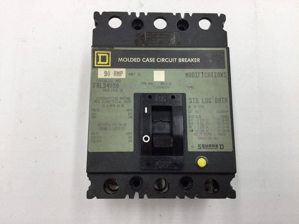 Square D FAL34090 3 Pole 90 Amp 480Vac Type FA4L Series 3 Circuit Breaker