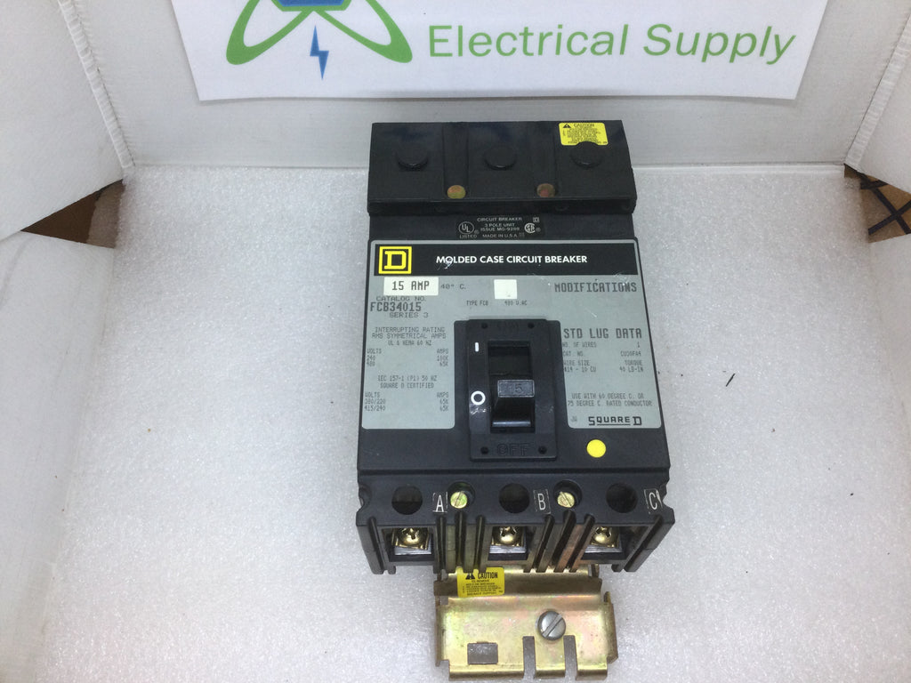 Square D FCB34015 3 Pole 15A 240/480VAC Series 3 Type FCB I-Line Circuit Breaker