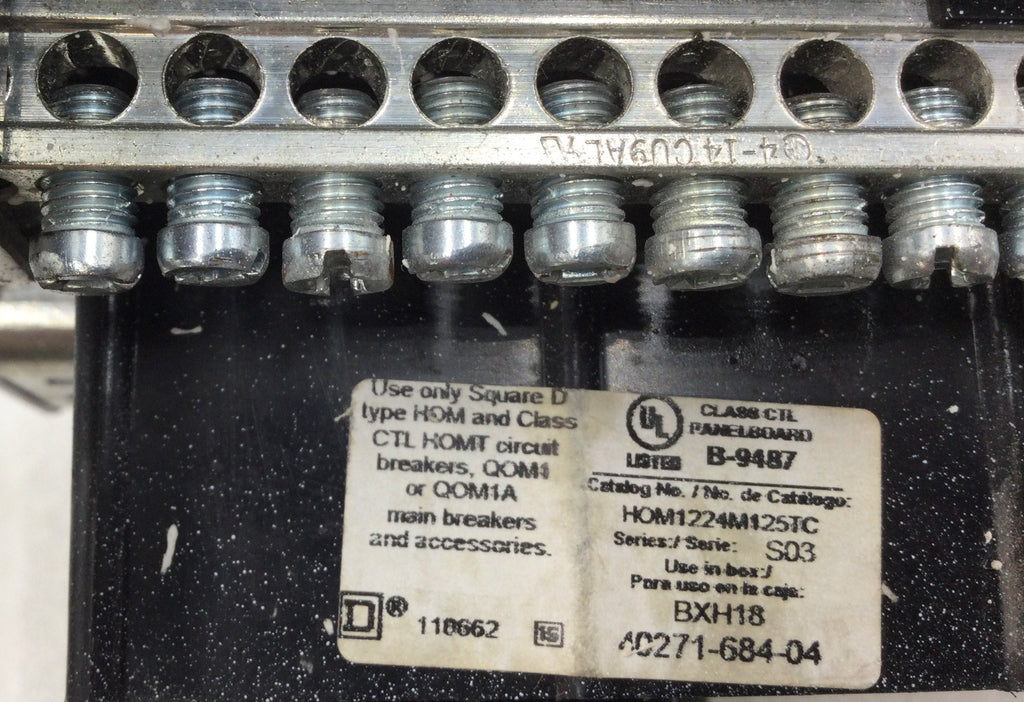 Square D HOM1224M125TC 6 Space/12 Circuit 125 Amp Main Breaker Load Center w/Breaker 10.5" X 10"