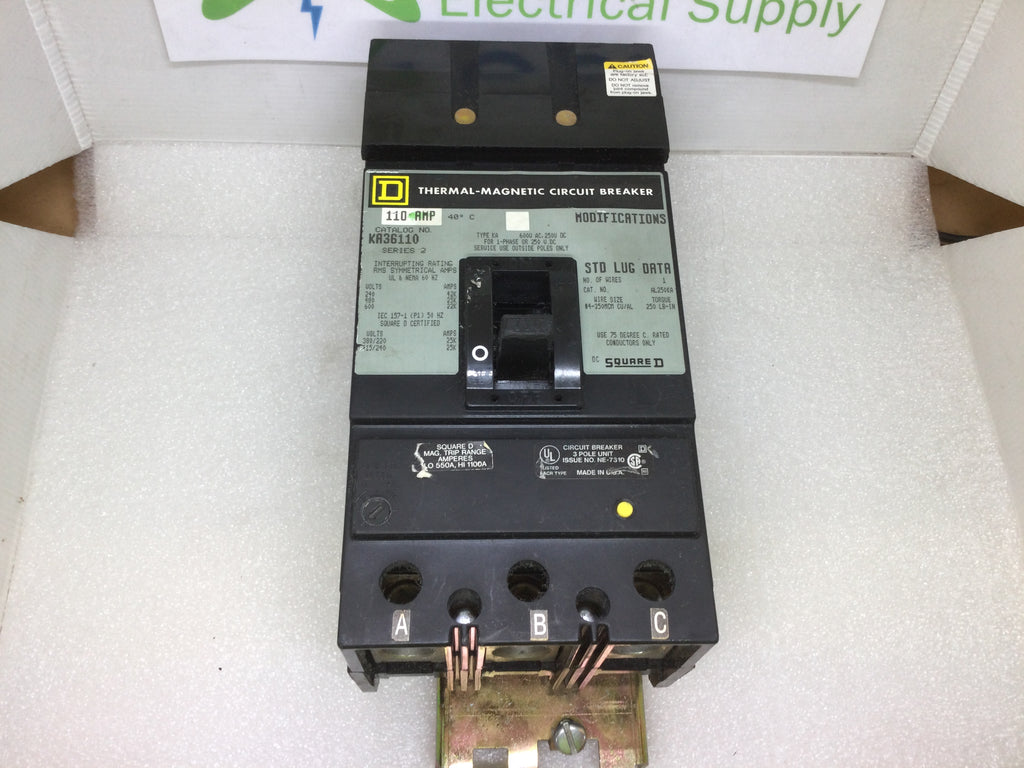 Square D KA36110 110 Amp 3 Pole 600VAC Series 2 Type KA Circuit Breaker