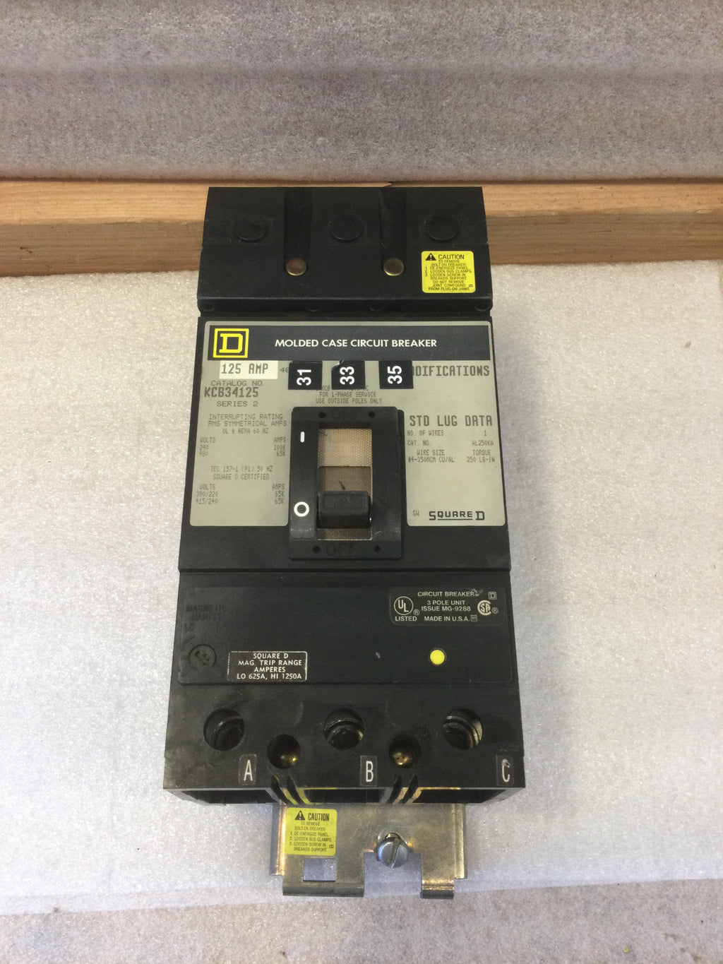 Square D KCB34125 3 Pole 125 Amp 240/480VAC Series 2 Type KCB I-Line Circuit Breaker With Adjustable Trip