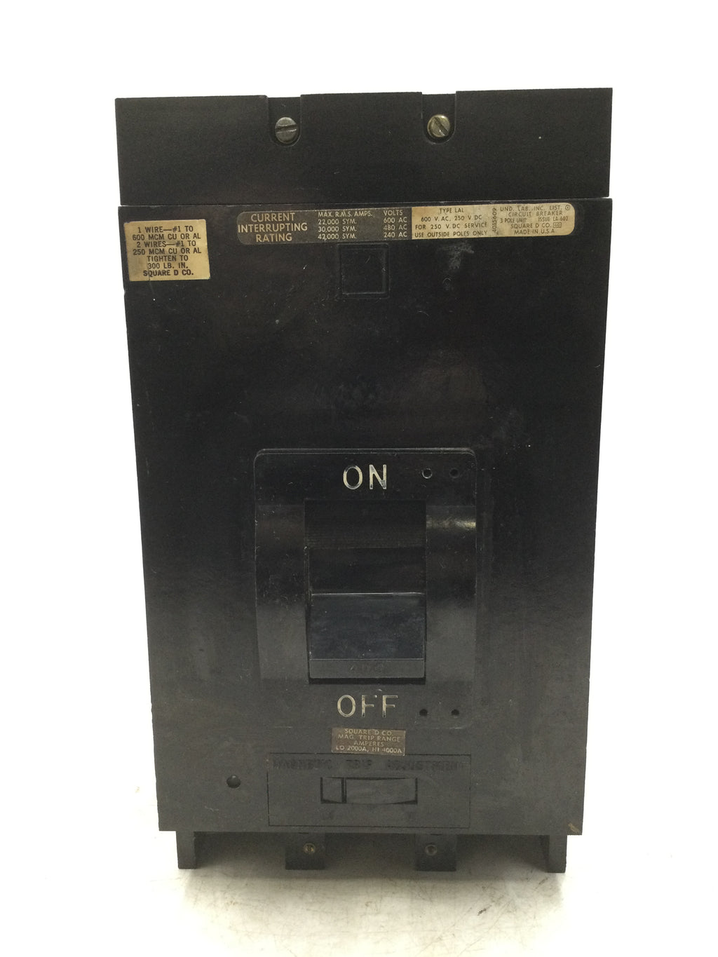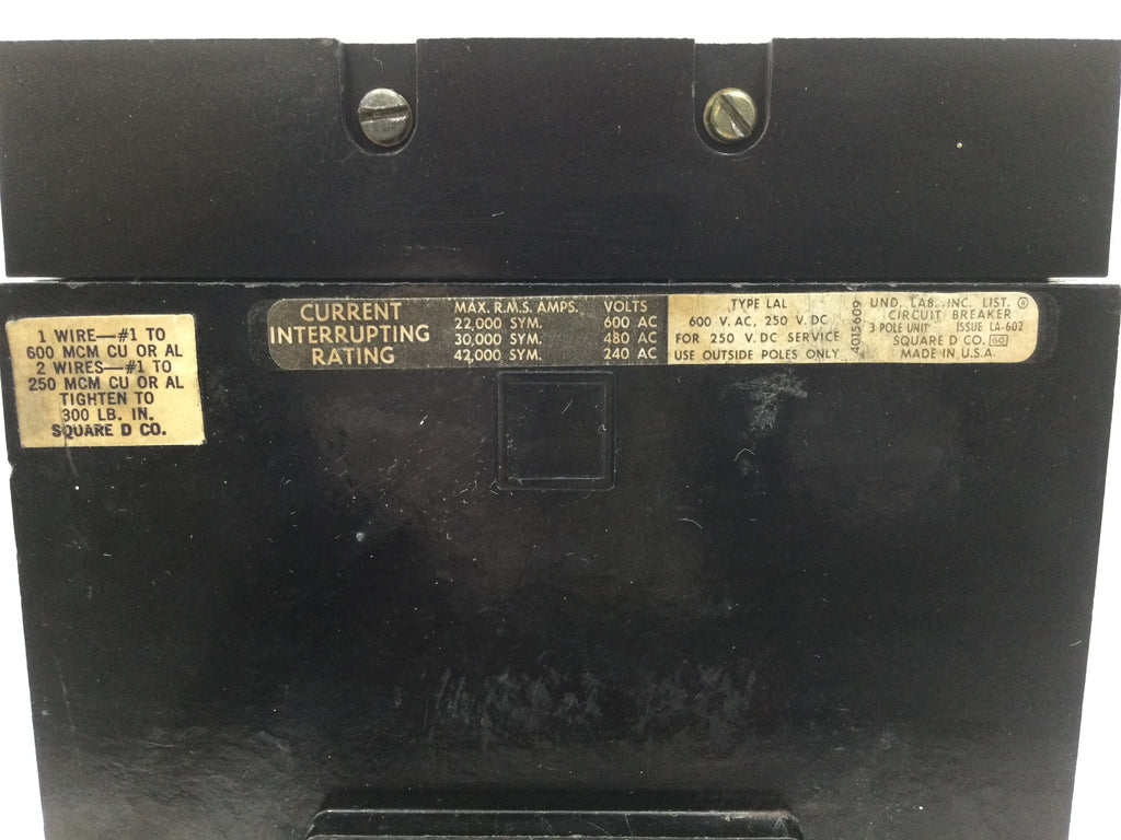 Square D LAP36400MBZ 3 Pole 400 Amp 600Vac 250VDC Type LAL Circuit Breaker