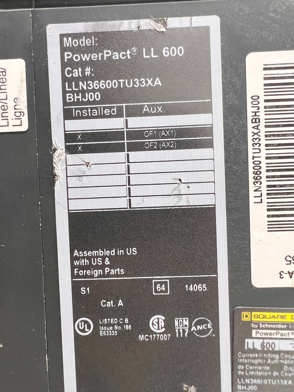Square D LLN36600TU33XA 600 Amp 600V 3 Pole