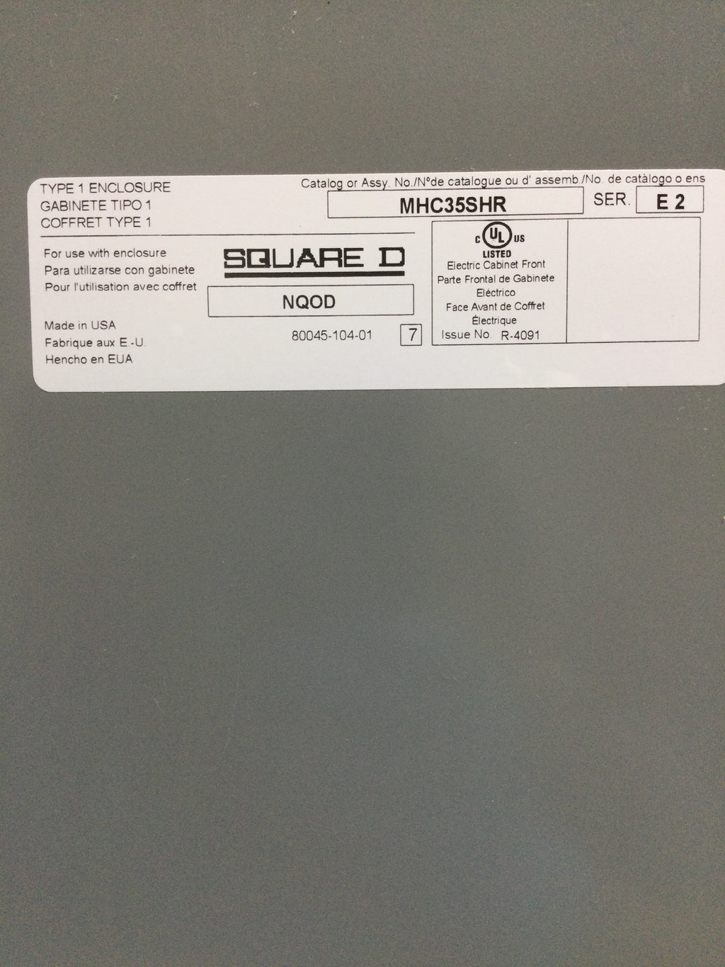 Square D MHC32SHR Cover/Door Only 44 Space Panelboard Catalog No. 12193781140080001 Type 1 NQOD Panel Board, 225Amp, 120V 3 Ph 4 wire 35 1/8" x 18 1/8"
