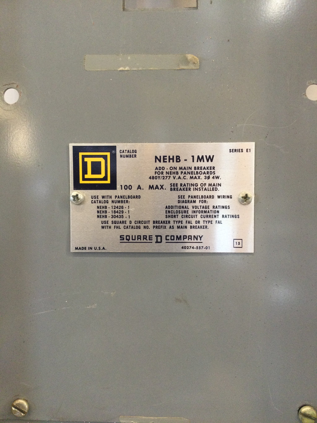 Square D NEHB-1MW 100 Amp 480Y/277v Series E1 Dead Front w/Main 38" x 8.5"