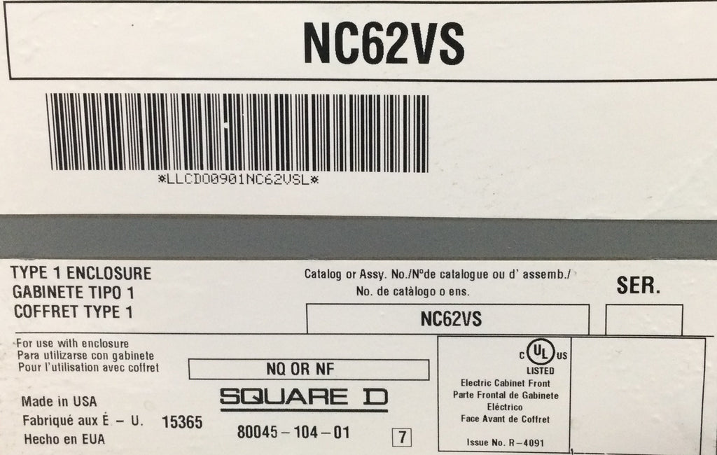 Square D NC62VS replacement panel door cover designed for standard electrical enclosures. This 62" x 20" cover provides protection and a finished appearance for your panel installation. Constructed to OEM specifications, it ensures proper fit and compatibility with Square D equipment.