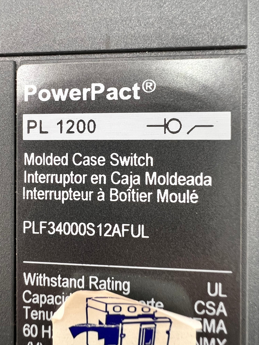 Square D PLF34000S12AFUL 3 Pole 1200A 600VAC PowerPact P Series Circuit Breaker