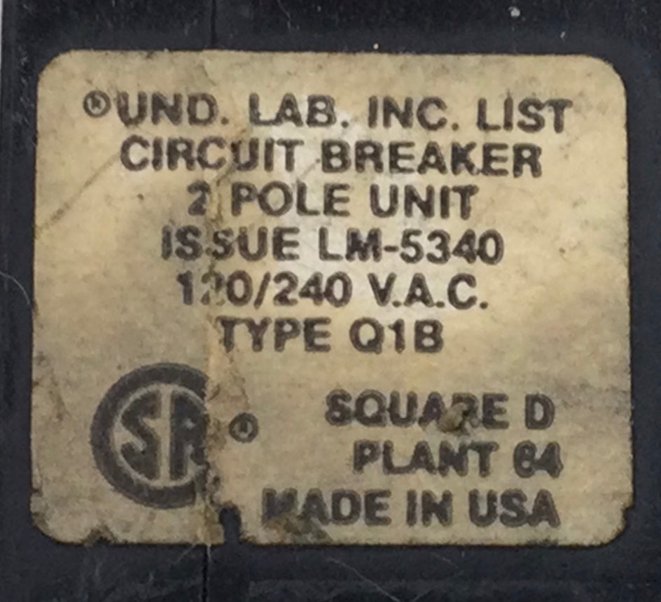 Square D Q1B250VH 50 Amp 2-Pole 120V/240V Circuit Breaker -Cosmetic Flaw