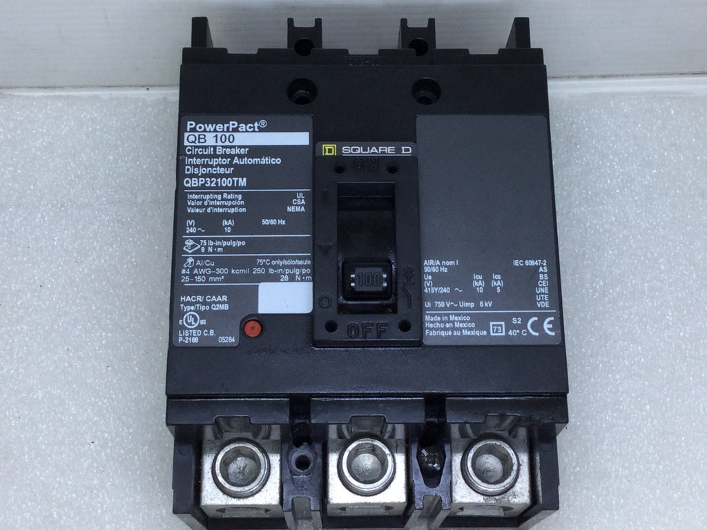 The Square D QBP32100TM is a 100 amp, 3 pole, 240VAC PowerPact Circuit Breaker with a Type QBP design. This professional-grade breaker is an essential component for ensuring safe and efficient electrical systems.