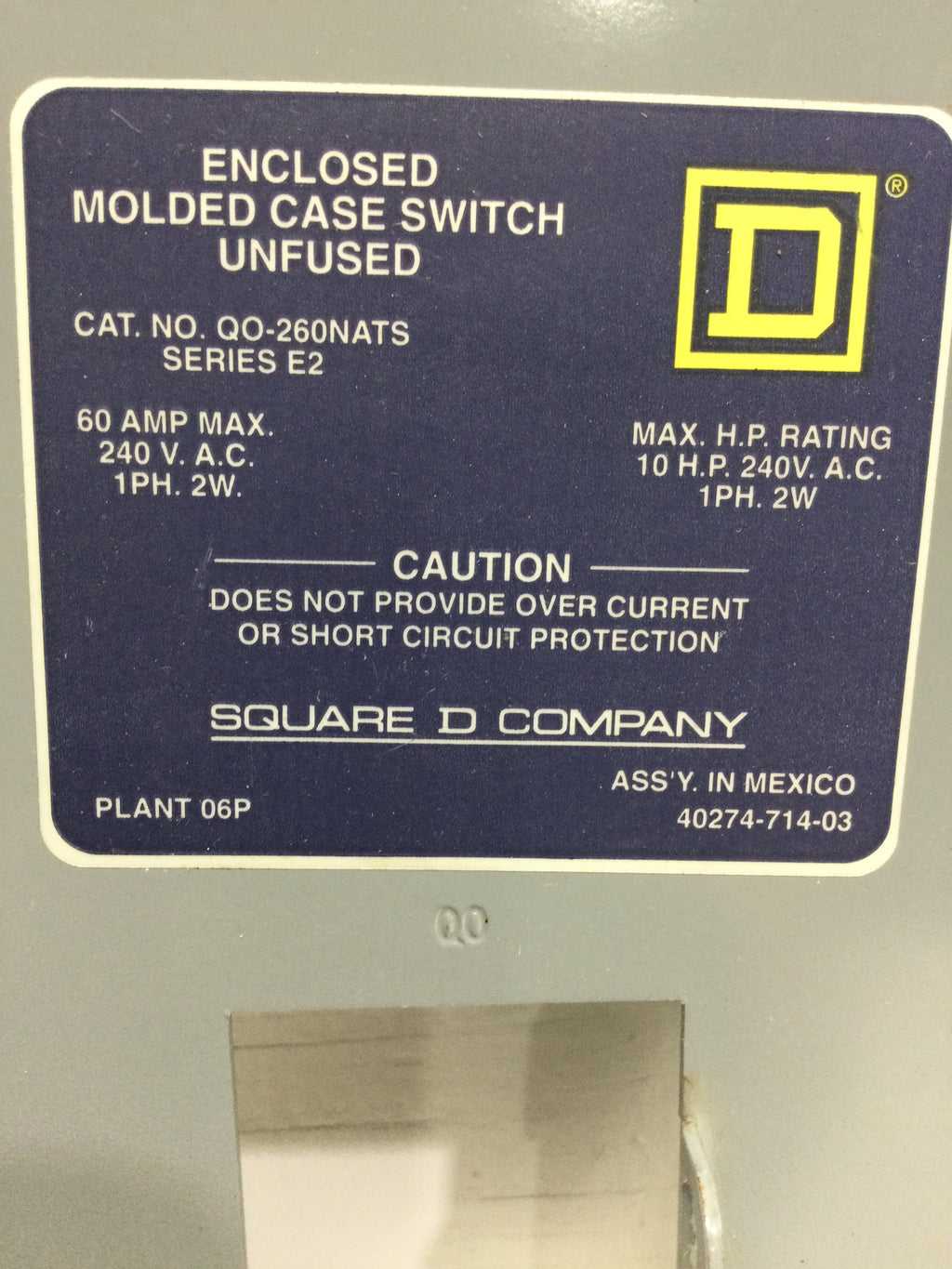 The Square D QO-260NATS is a durable switch cover designed for 60 Amp, 240V applications. Measuring 9 1/2" by 5", it ensures secure protection and easy access for your electrical switches. Ideal for maintaining safety and compliance in your electrical system.