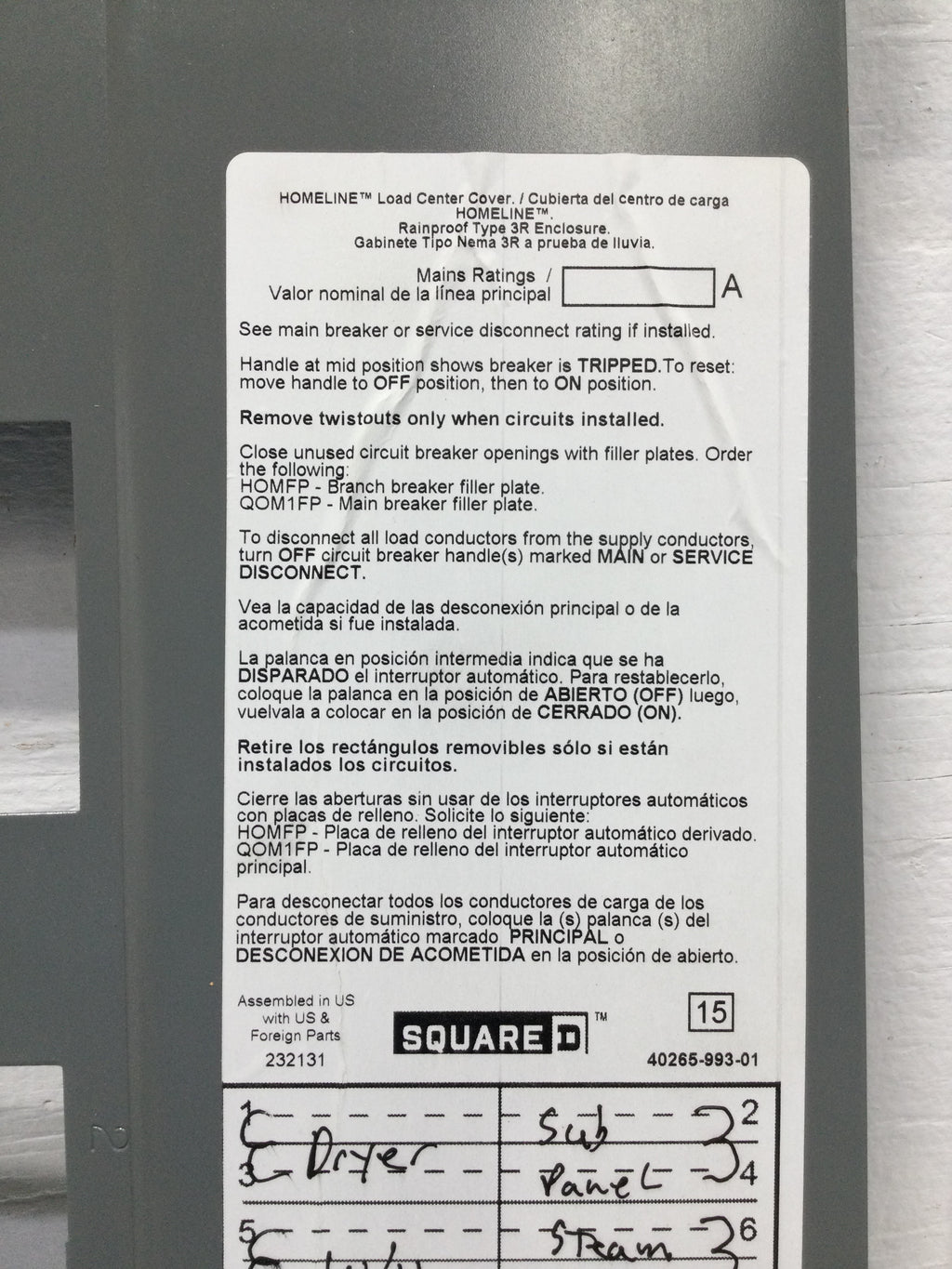 Square D HOM4284L225PRB 225 Amp 42 Space 120/240V Dead Front w/Main 38" x 14"