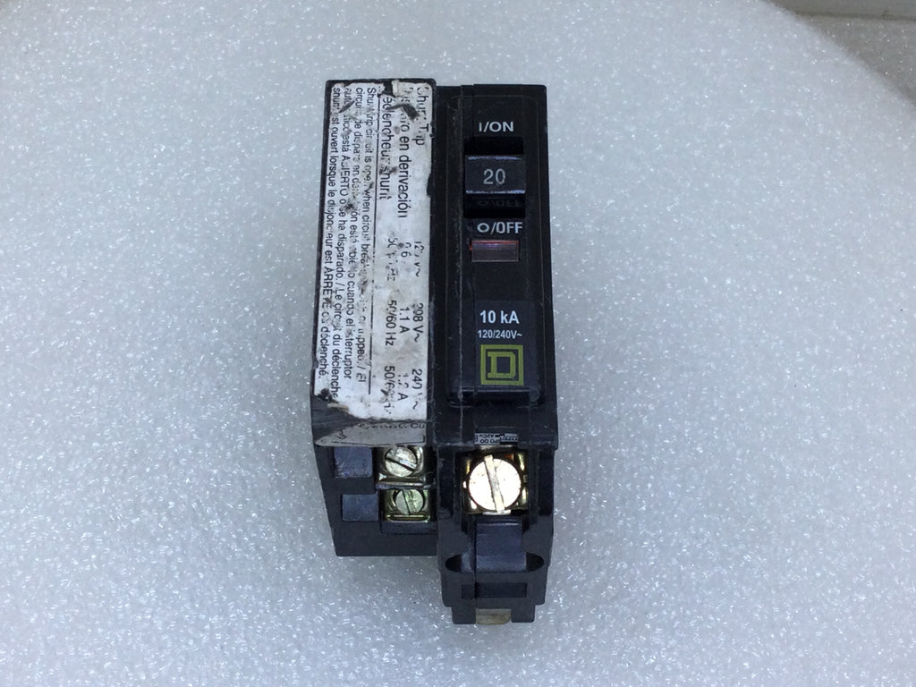 Square D QO1201021 20 Amp 1 Pole 120/240V Breaker w/ Shunt Trip - Cosmetic Flaw