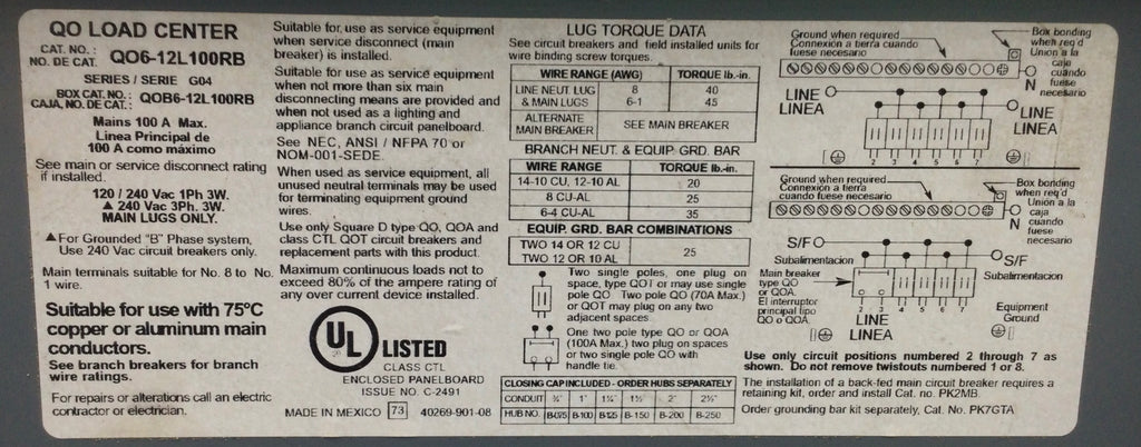 • Model #: QO6-12L100RB