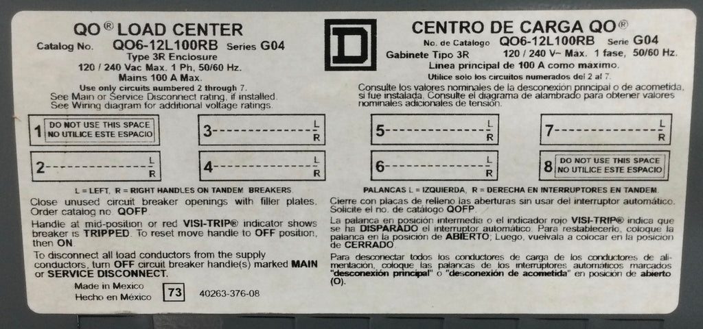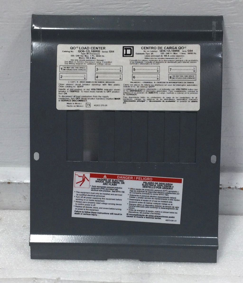 Square D QO6-12L100RB 100 Amp 8 Space 120/240V Dead Front Only 11 1/4" x 8 5/8"