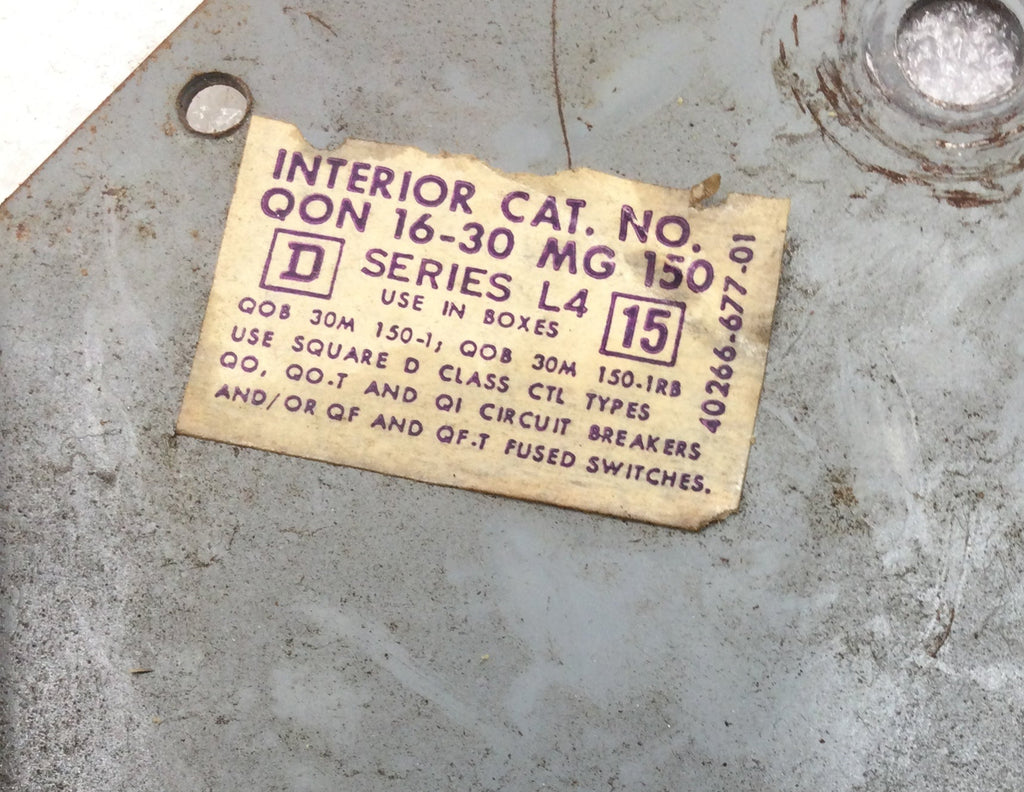 Square D QON16-30MG150 150 Amp 16 Space 120/240V Load Center Guts Only 6" x 21"