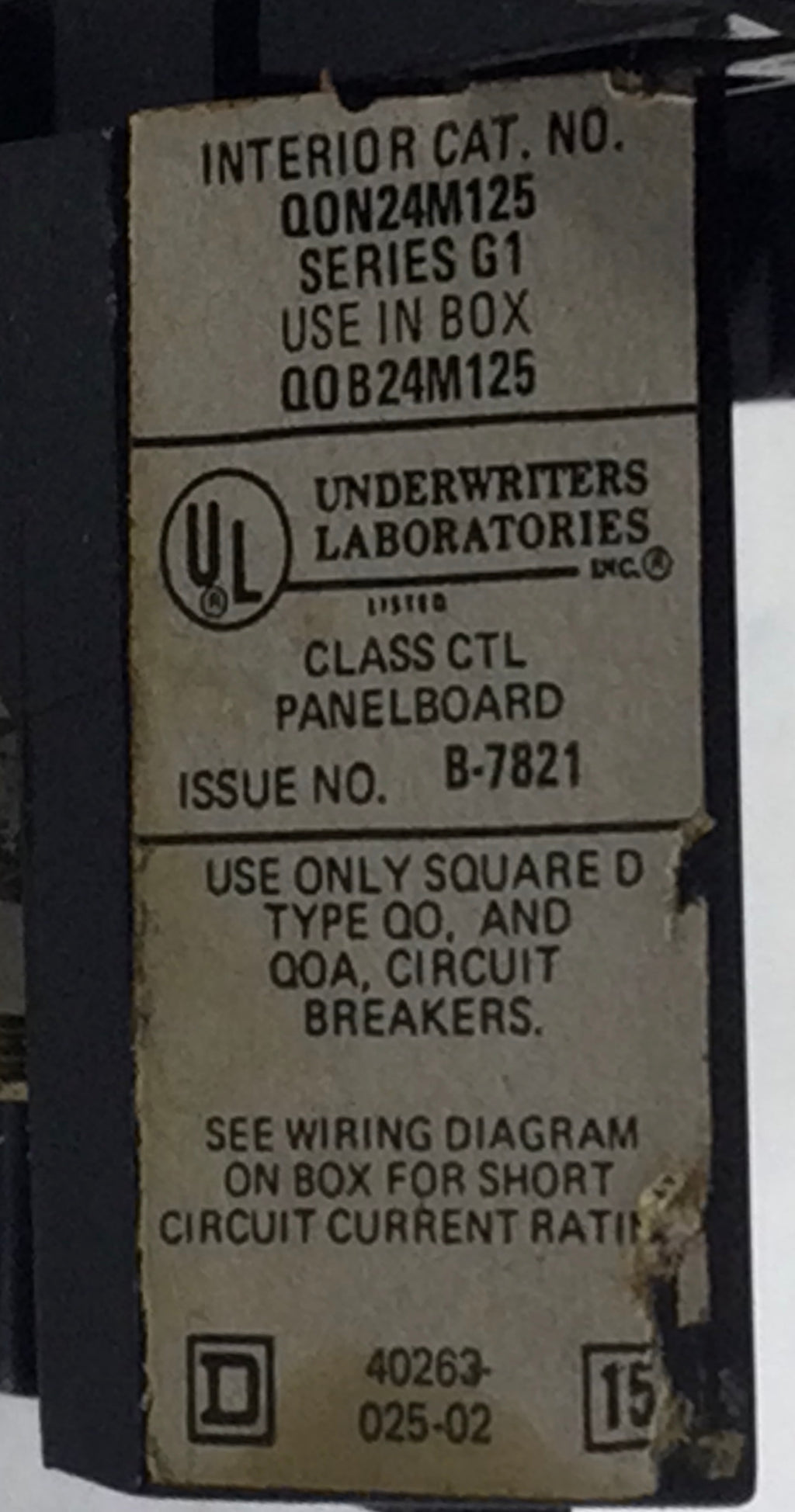 Square D QON24M125 12/24 Space 125 Amp Guts Only 15 5/8" x 9 1/2" - Cosmetic Flaw