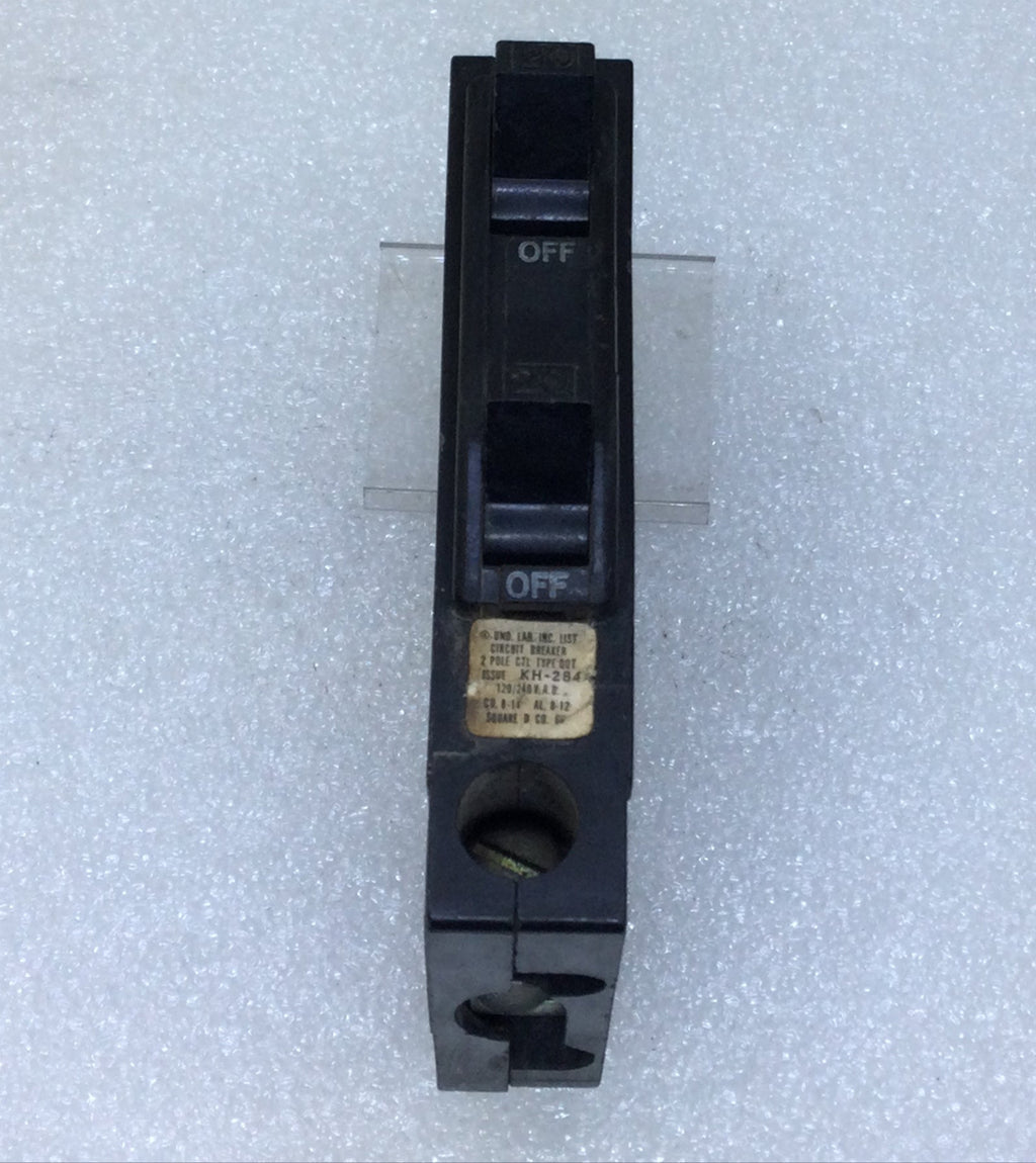 The Square D QOT2020 is a 1-pole, 240V twin/piggy-back circuit breaker rated for 20/20 amps. Designed with a metal hook for secure installation, it offers reliable performance despite a cosmetic flaw.