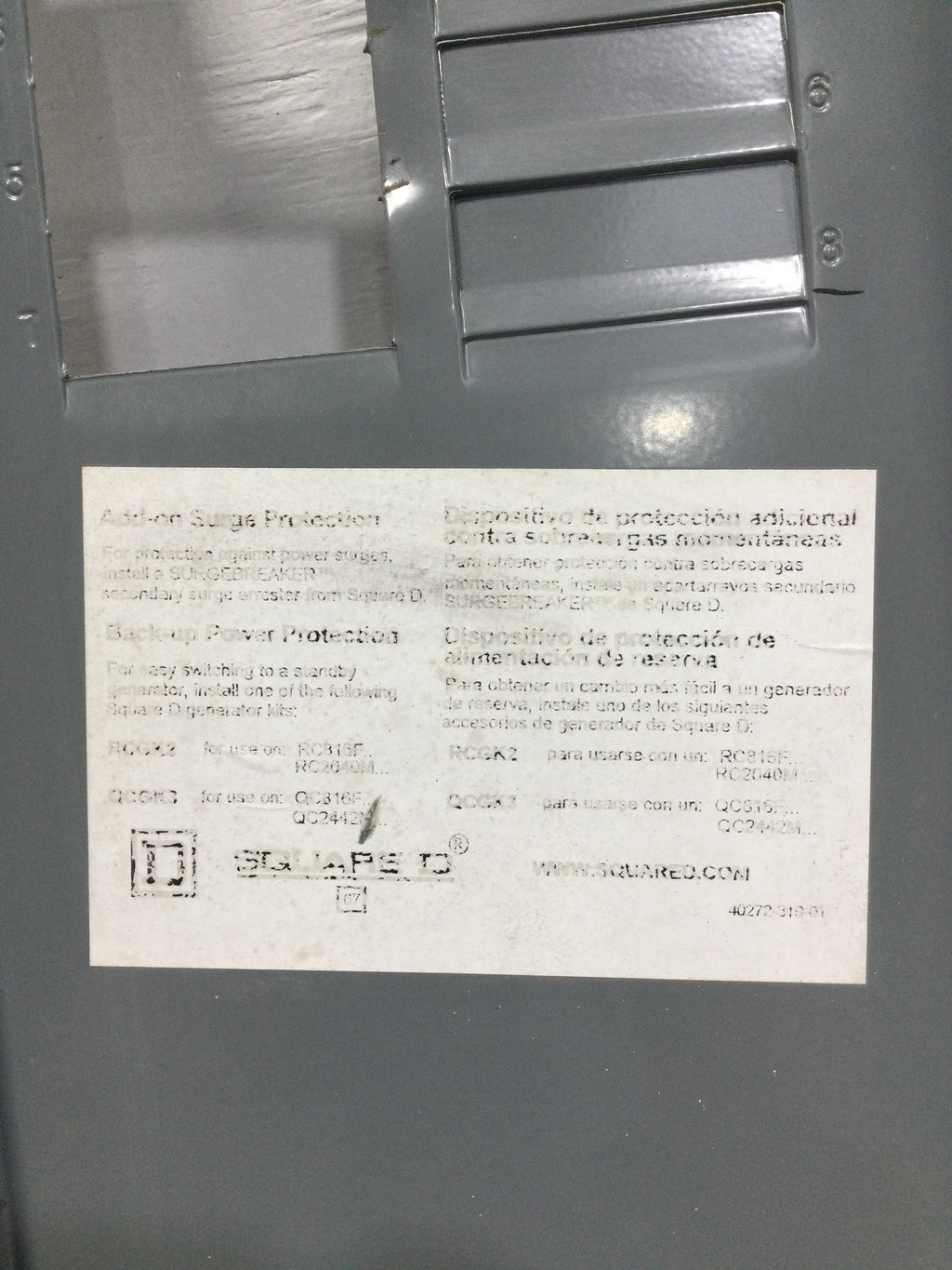 Square D RC816F200C 200A 8 Space 120/240V Dead Front w/Main 20 3/8" x 13 5/8"
